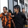 Ariel dan Sarah dalam pengawalan ketat Pemuda Pancasila saat memasuki ruang sidang.