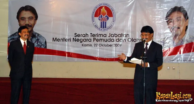Andi Malarangeng dan Adhyaksa Dault di Gedung Menpora, Jakarta, Kamis (22/10/09)