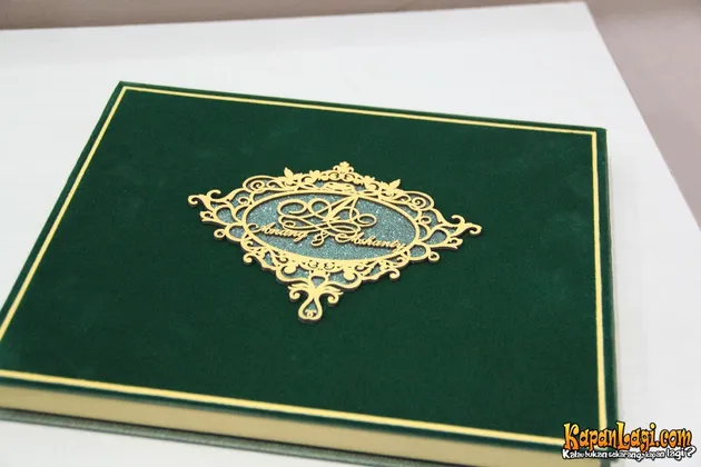 Ini bukan Al Qur'an, tapi ini adalah undangan pernikahan Ashanty dan Anang yang memang didesain mirip dengan Al Qur'an. Pasangan ini tak segan merogoh kocek untuk menggandakan undangan mewah ini hingga ribuan lembar jumlahnya.