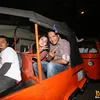 Edo Kondologit nampak menikmati kovoi naik bajaj keliling Jakarta. Aksi ini merupakan dukungan untuk Jokowi - JK.