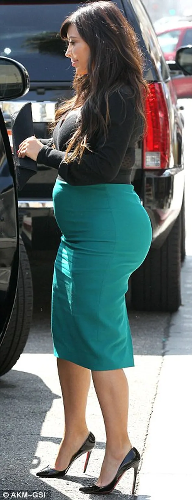 Tubuhnya yang membengkak selama hamil, membuat Kim Kardashian pusing memilih baju hamil. Meski begitu, ia tetap tampil seksi di beberapa kesempatan. Meski badannya tampak membesar, ia menampik rumor berat badannya yang dikabarkan mencapai angka 90kg.