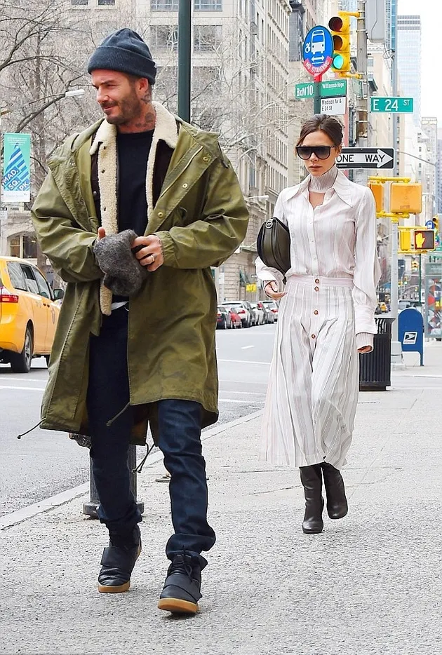 Brooklyn yang kini lebih sering berada di Amerika Serikat untuk studinya ini dikunjungi kedua orang tuanya. Victoria dan David Beckham tertangkap kamera paparazzi sedang meninggalkan sebuah hotel menuju restoran untuk melakukan perayaan sederhana. Sang desainer terlihat chic dalam balutan setelan blouse dan rok warna senada.