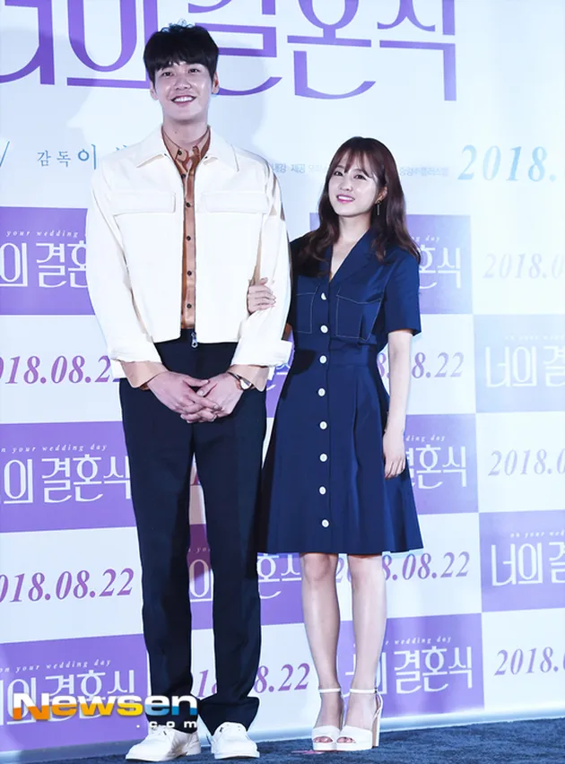 Park Bo Young dan Kim Young Kwang menghadiri event film baru mereka ON YOUR WEDDING DAY. Berperan sebagai cinta pertama satu sama lain, keduanya punya chemistry yang cute banget nih. Apalagi keduanya punya beda tinggi yang cukup jauh, membuat Park Bo Young makin imut.
