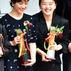 Han Ji Min yang terlihat terharu saat membawa pulang penghargaan Best Actress atas peran dalam film barunya yang berjudul MISS BAEK.