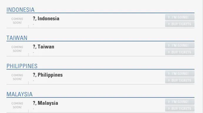 Tidak hanya Indonesia sebagai salah satu dari negara Asia yang didatangi, VIP di Taiwan, Filipina dan Malaysia juga berbahagia lantaran negara mereka sudah masuk dalam list konser Big Bang. Meski sampai saat ini belum ada promotor resmi, namun desas-desus menyebutkan bahwa Big Daddy Live! yang mengundang Lady GaGa di Indonesia bakal memboyong Big Bang ke Indonesia.
