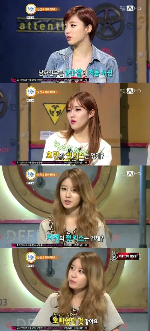 Melanjutkan kedua rekannya, Hyomin mengaku, "Aku melakukan ciuman pertama saat aku kelas 3 SMA setelah aku melakukan Ujian Masuk Universitas," Mendengar pengakuan mereka, MC begitu kaget bahwa Jiyeon yang paling muda justru melakukan ciuman pertama lebih dulu. Netizens lalu berkomentar, "Wow, Jiyeon melakukan ciuman pertama lebih cepat, "Setidaknya mereka semua jujur," dan "Aku sedang menduga siapa yang mendapatkan ciuman pertama Jiyeon?"