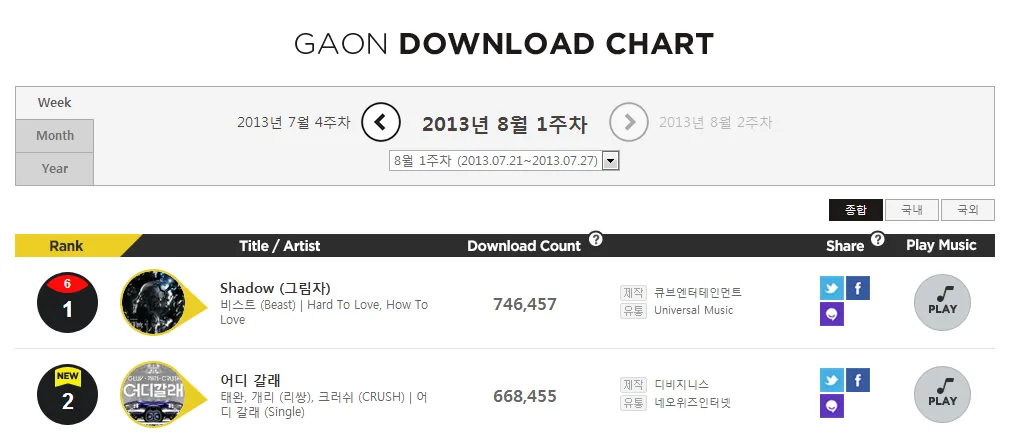 Gaon sendiri adalah chart musik K-Pop yang mirip dengan chart Billboard di Amerika Serikat yang dijadikan tolak ukut untuk chart penjualan album musik secara online atau offline di tingkat nasional.Di posisi kedua ada lagu kolaborasi antaran Taewan, member Leessang yakni Gary dan Crush berjudul Where do You Want to Go? sebanyak 668.455 unit. Posisi ketiga ditempati U&I milik Ailee dengan 649.440 unit.Di minggu sebelumnya posisi B2ST ditempati Ailee yang berhasil menjual 1.002.370 unit dan B2ST justru ada di posisi ketujuh dengan menjual sebanyak 447.047 unit. Namun hebatnya pasca dirilis, lagu B2ST sudah langsung ada di jajaran chart teratas.