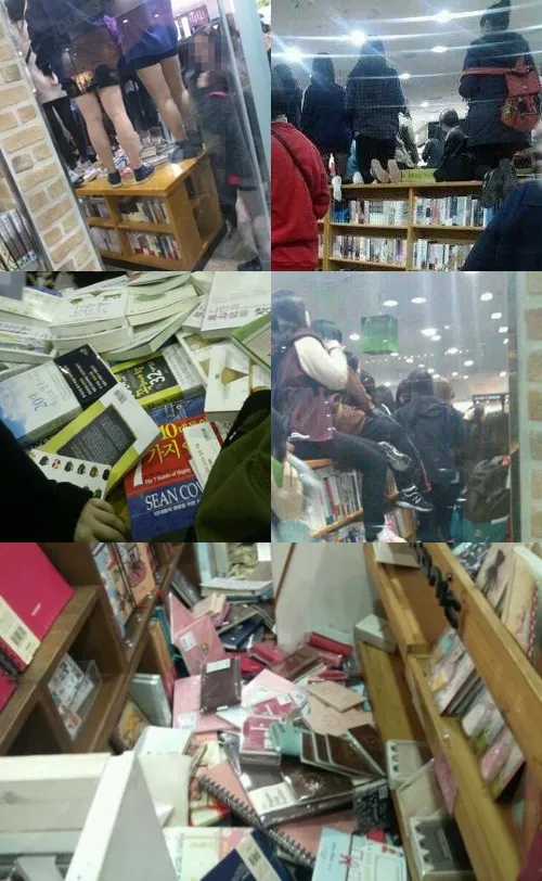 Orang yang hadir dalam acara itu berkomentar, "Para siswa bahkan juga merusak alat anti pencurian," "Lebih dari seratus buku telah rusak," "Mereka benar-benar sulit diatur dan sangat mengganggu orang-orang yang datang untuk membeli buku," atau yang lebih parah komentarnya, "Mereka benar-benar bersikap seperti lagu dari Block B itu sendiri, Nanrina (yang berarti jadi gila),"