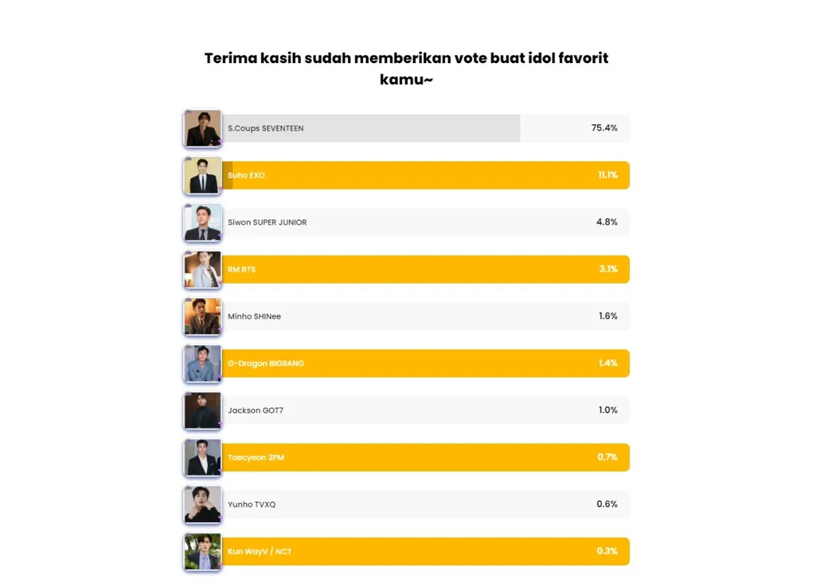 Polling yang berlangsung dari 7 - 21 Desember 2022 ini berhasil dimenangkan oleh S.Coups SEVENTEEN yang memperoleh suara sebesar 75,4%, dianggap sebagai Idol K-Pop yang Cocok Punya Club Sepak Bola.