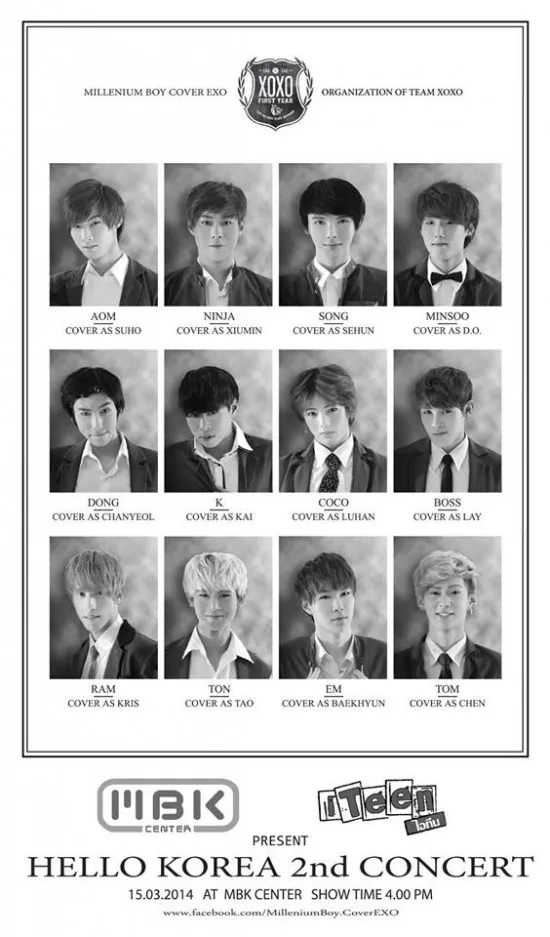Salah satu grup cover dance K-Pop paling terkenal di dunia ialah Millenium Boy yang dijuluki EXO-T. Mereka memang menjadi cover dari idol grup EXO, namun sepertinya kini Millenium Boy sedang didera masalah. Grup yang berisi 11 pria Thailand dan seorang pria Korea ini terancam digugat oleh agensi SM Entertainment lantaran kemiripan mereka dengan EXO.