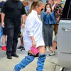 Sepatu boosts unik Jennifer Lopez © Splashnews via dailymail.co.ukBuat kalian yang belum tahu penampilan wanita yang akrab disapa J.Lo, ini dia foto viralnya. Bagaimana tidak viral, sepatu boots ini bikin salah fokus. Dengan potongan setinggi itu dan bahan jeans yang dipakai, boots ini terkesan seperti celana yang melorot! Ditambah lagi dengan maxi-shirt dress berwarna putih yang dipakai J.Lo. Ia terkesan tidak memakai celana atau celananya malah melorot.