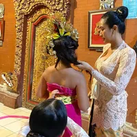 Potret Bahagia Keluarga Happy Salma Pakai Baju Adat Bali