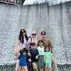 Dalam salah satu foto, Donna Harun terlihat menikmati liburan bersama Herfiza, Ricky dan cucu-cucunya di sebuah tempat wisata alam. Mereka berpose dengan latar belakang air terjun buatan yang indah. Donna tampak santai dengan pakaian kasual, sementara Herfiza mengenakan busana yang nyaman dengan hijabnya.