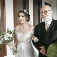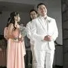2. Istri Dimas Akira itu terlihat sangat anggun dalam balutan kebaya bernuansa putih berhias brokat indah.