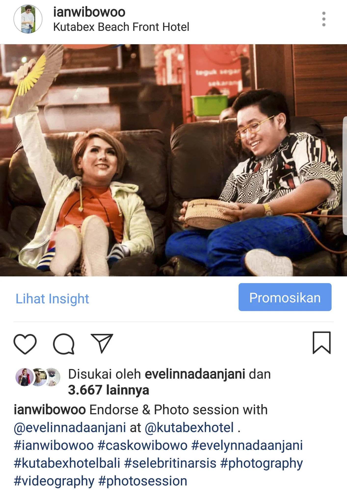 Tak mau ketinggalan, anggota terakhir, Ian Wibowo juga mengunggah sebuah foto bersama wanita cantik. Tak lain tak bukan wanita itu adalah Evelyn Nada Anjani, mantan istri Aming.