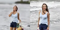 Meskipun sedang berkeringat, wajahnya tetap tampak segar dan berseri. Untuk makeup, Gladys memilih tampilan sangat minimalis, hanya dengan pelembap dan lip balm natural. Outfit yang dikenakannya juga menunjukkan bahwa ia tetap fashionable meski sedang beraktivitas intens.