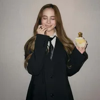 Agatha Chelsea tampil anggun dalam balutan outfit pastel yang memperkuat kesan feminin dan lembut. Rambut panjang yang tergerai rapi menambah aura elegannya, sehingga tak heran jika ia disebut mirip Barbie.